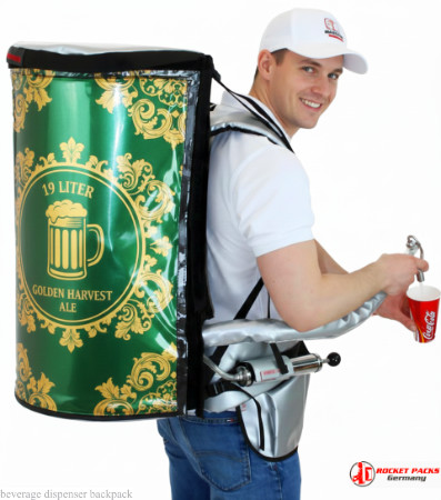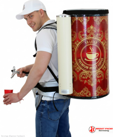 Wherever the guest is to be supplied with perfectly tempered drinks, there are hardly any obstacles with the Rocketpacks.The backpack for a beverage with a tank has a capacity of 11 liters.